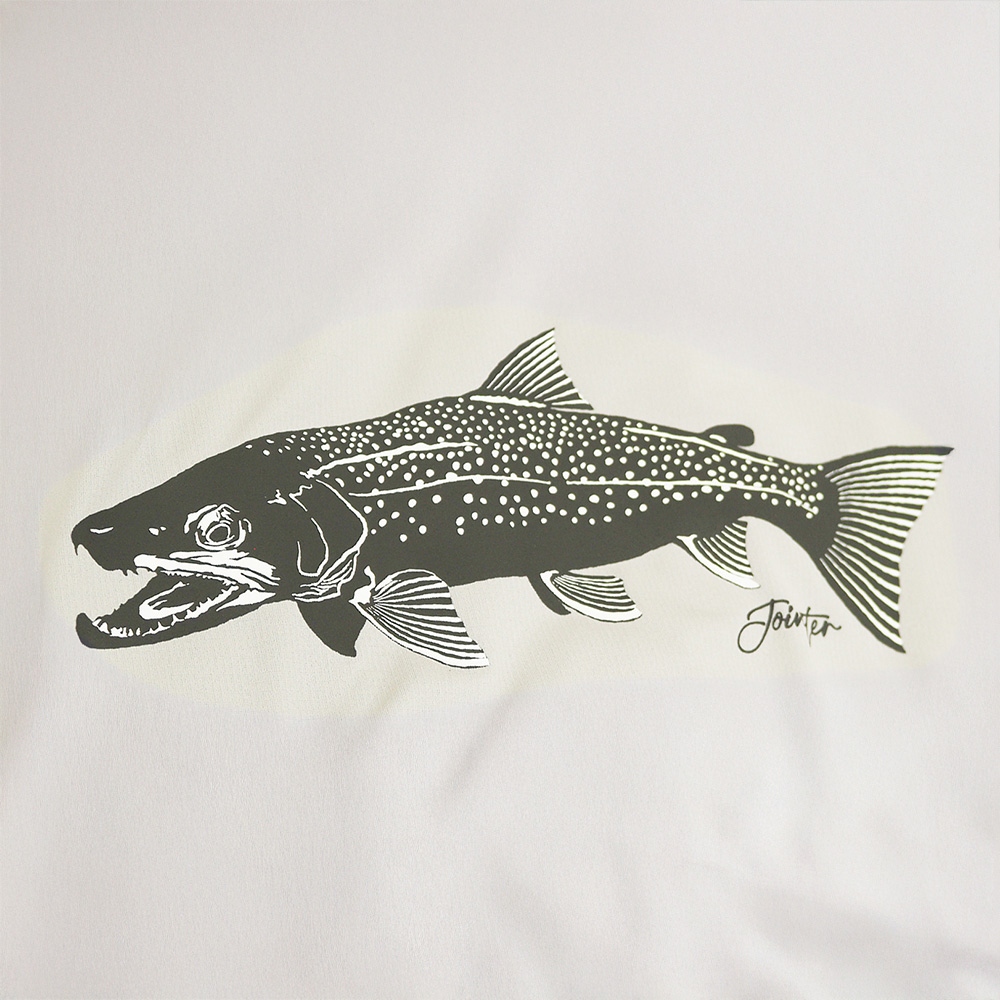 背に描いたのは、厳しい自然を生き抜いた「鼻曲がり(カイプ)」の尺イワナ。